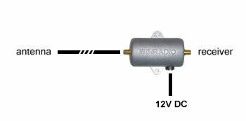 方式一:下變頻器安裝到天線和接收機(jī)之間的接收機(jī)端,通過帶SMA接頭的低損耗同軸電纜相連。在這種安裝方式下,電源直接連接到下變頻器。我們建議使用性能好的濾波電源,如Winradio的 SF-41系列電源(該電源隨下變頻器一起提供)。